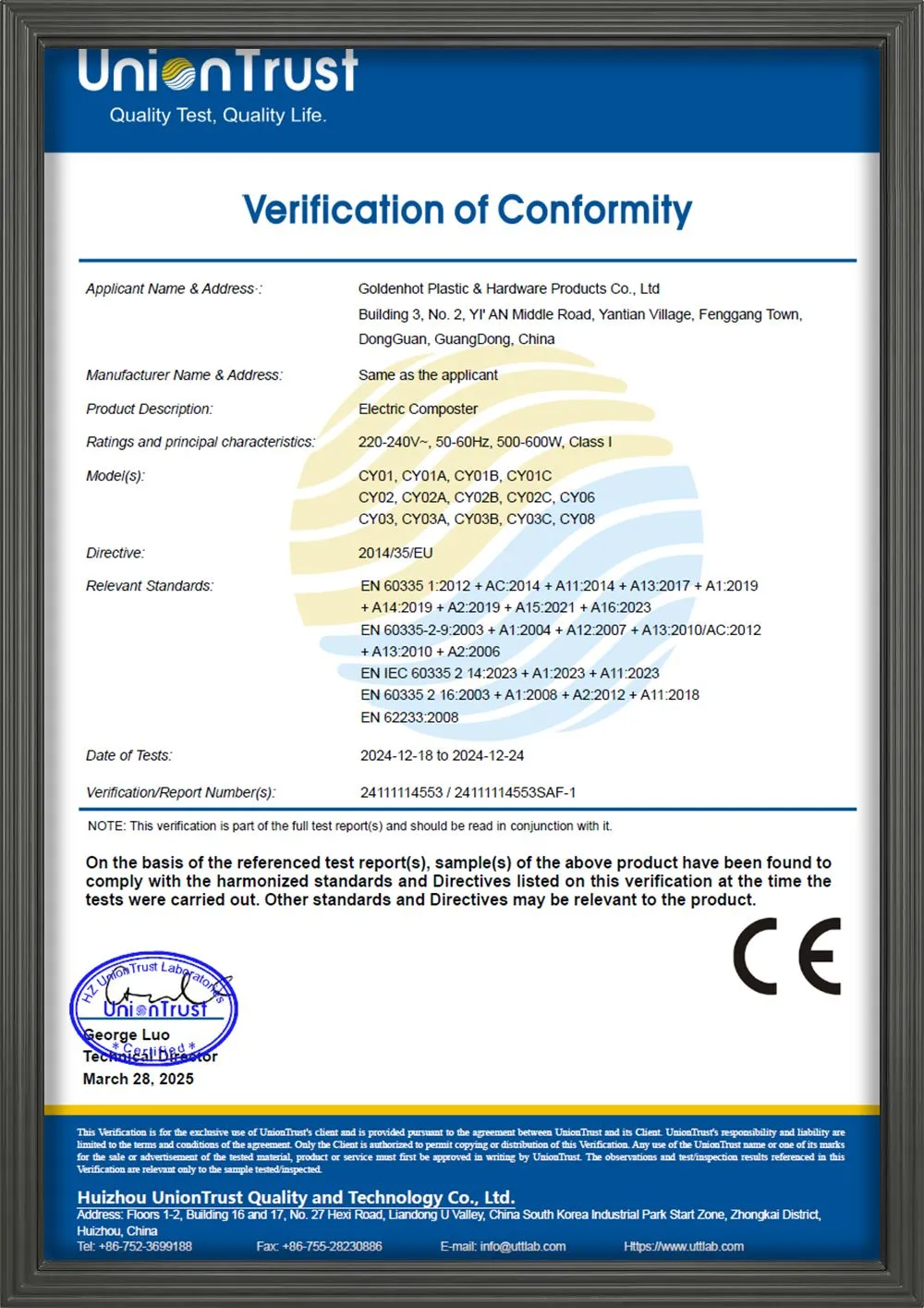 Dongguan Goldenhot Plastic & Hardware Products Co., Ltd. has been one of the professional manufacturers of making, designing, and selling Pet Food Maker and Kitchen Composter since 2009 and is located in Fenggang Town, Dongguan City, with convenient transportation. lt is just a 30-minute drive from Yantian Port and 1.5 hours from Bao’an Airport. The factory covers an area of 20,000 square meters and employs approximately 310 experienced staff.